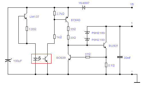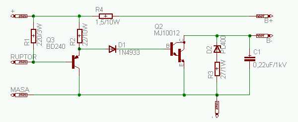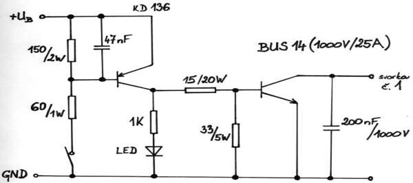Cautand pe net, am mai gasit o schema similara la https://www.mujweb.cz/www/xyzz/lada/elzap.htm , diferind polarizarea tranzistorului final..