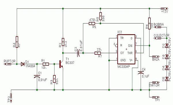 Aprinderea electronica prezentata este bazata pe circuitul integrat specializat MC3334P creat de Motorola.