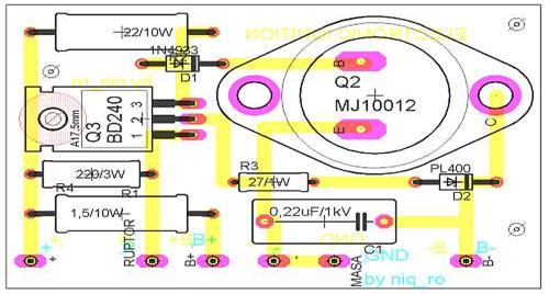 - rezistorul R4 de 47 ohm / 7W a fost inlocuit cu un rezistor de 43 ohm / 7W,