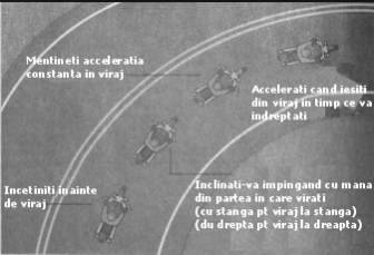 La viteze mai mari de 20km/h trebuie sa inclinati motocicleta si sa stapaniti manevra numita "contra-virare" ("counter-steering","push-steering").