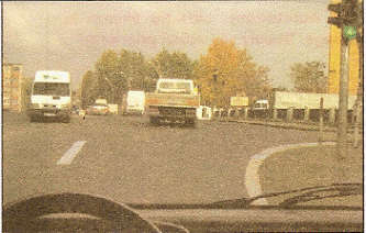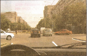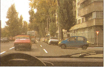 Circulatia este blocata. Cum procedezi? a) nu ai obligatia sa cedezi trecerea; b) nu patrunzi in intersectie, pana cand aceasta nu se deblocheaza; c) vei depasi coloana din fata prin stanga. |