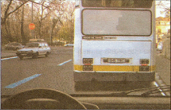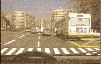 In intersectia care urmeaza este instalat indicatorul 'Oprire'. Cum vei proceda corect? a) daca autobuzul s-a oprit in dreptul indicatorului, iti poti continua drumul imediat dupa acesta; b) dupa plecarea autobuzului opresti in locul in care vizibilitatea este maxima, te asiguri, dupa care iti continui drumul; c) depasesti autobuzul, care s-a asigurat in prealabil in dreptul indicatorului. |
