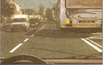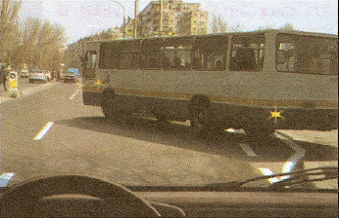 In aceasta situatie: a) opresti obligatoriu; b) depasesti autobuzul; c) circuli cu viteza redusa si, la nevoie, opresti, pentru a permite autobuzului sa reintre in trafic. |