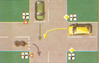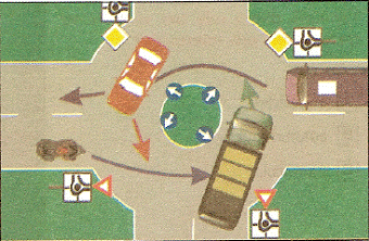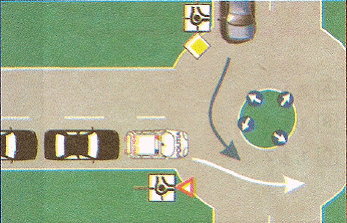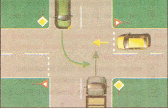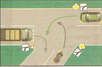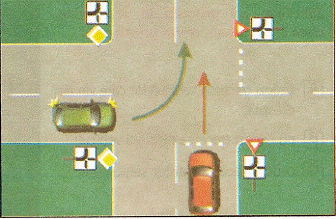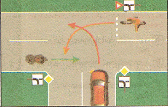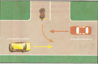 In prima intersectie vei acorda prioritate: a) de stanga; b) de dreapta, daca nu exista alte reglementari in intersectie; c) autovehiculelor care circula din dreapta, cat si din stanga. |