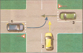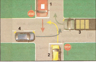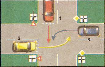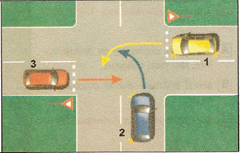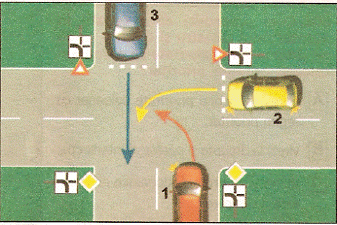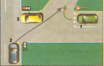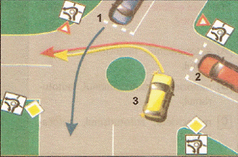 In ce ordine trec cele trei autovehiculeprin intersectia prezentata? a) 2,1,3; b) 1,2,3; c) 1,3,2. |