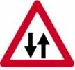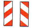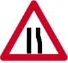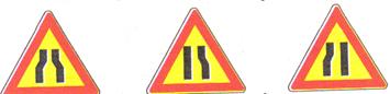 avertizeaza conducatorii auto ca drumul se ingusteaza pe partea sianga. Pe sectorul de drum îngustat sunt interzise urmatoarele manevre: oprirea, stationarea, întoarcerea, mersul înapoi , depasirea fiind permisa . Indicatoarele pot avea fondul galben in loc de alb , in cazul in care ingustarea este trmporara , din cauza unor lucrari pe partea carosabila ori aparitiei unui obstacol (bolovani , copaci , avalanse , noroi , cazute de pe versanti )