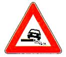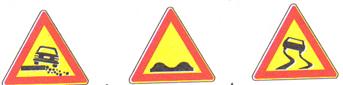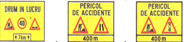 doua indicatoare pot fi intalnite avand fond galben caz in care avertizarea este temporara (drumul devine alunecos datorita deversarii pe partea carosabila a unor solutii ,substante din autovehicule destinate transportului de marfuri implicate in accidente de circulatie ; drumul prezinta denivelari in urma deformarii carosabilului din cauza caldurii din timpul verii) .