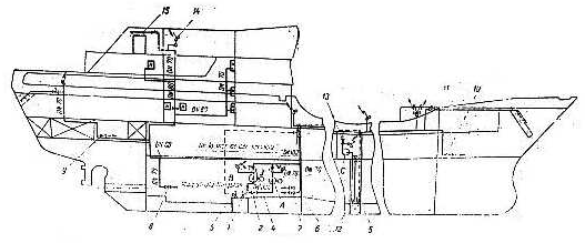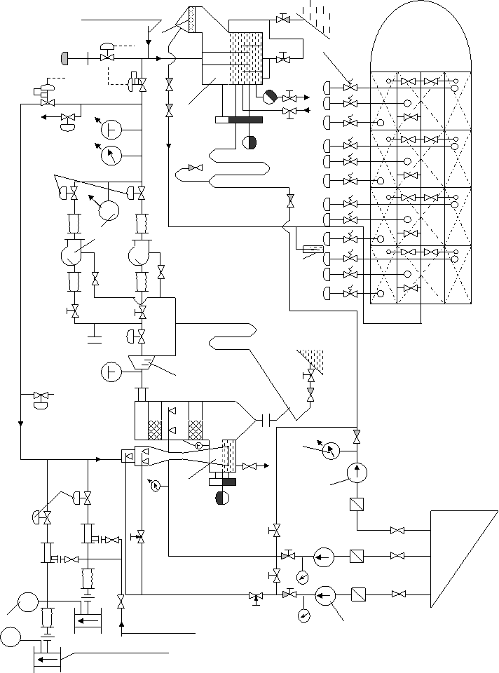 In figura 36 este prezentata schema unei instalatii de prevenire cu gaz inert de ardere, a incendiilor la un petrolier de 200.000 tdw.