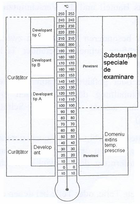 Conditii de temperatura in timpul examinarii cu lichide penetrante (grade Celsius)