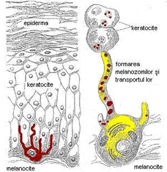 Sub actiunea UVA, enzima tirozinaza din melanocite transforma tirozina īn melanina. Acest pigment are capacitatea de a absorbi radiatiile ultraviolete īn proportie de 90-100%, oferind īn acest fel protectie contra insolatiei.