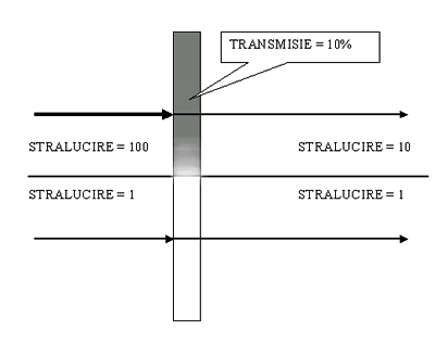 Filtrul gri va absorbi intr-o proportie importanta lumina care il traverseaza