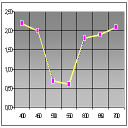 Curba de absorbtie a unui ipotetic filtru colorat: densitatea este mare pentru violet-albastru si pentru galben-portocaliu-rosu si mica pentru verde. Lumina transmisa va fi predominant verde.