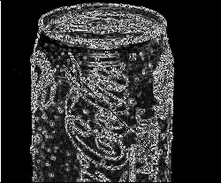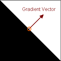 prezentat un punct de pe contur si vectorul gradientului corespunzator. In acel punct, intensitatea culorii se schimba de la 0 la 255 in