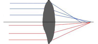 si nu pe un plan. Atat astigmatismul cat si curbura de Dispersia cromatica Aberatia (dispersia) cromatica este determinata de implacabilele legi optice: indicele de refractie al oricarui material este dependent de lungimea de unda a radiatiei incidente si anume mai mare pentru radiatia albastra, comparativ cu radiatia rosie. Asa se face ca o lentila convergenta va focaliza mai aproape de centrul sau optic componenta albastra si mai departe pe cea rosie, a unei surse punctiforme de lumina alba.