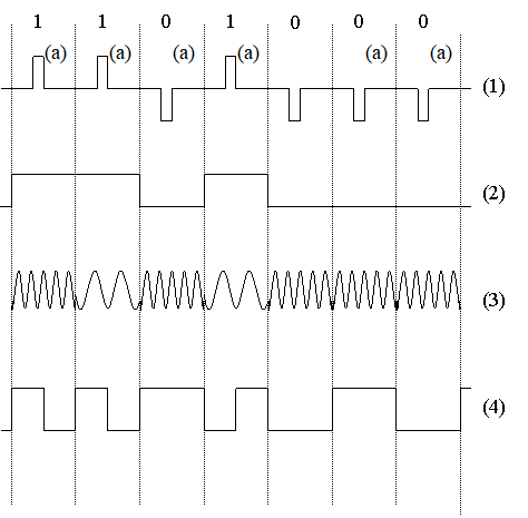 Codurile ce se folosesc in general pentru transmiterea informatiilor digitale sunt NRZ, RZ si FSK.