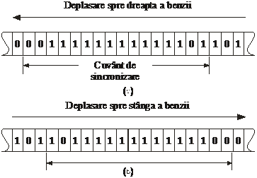 La deplasarea intr-un sens exista o anumita succesiune a bitilor cuvantului de sincronizare, iar la schimbarea sensului vom avea o alta succesiune. In acest mod simplu prin folosirea unui cuvant de sincronizare asimetric se poate detecta sensul de deplasare al benzii.
