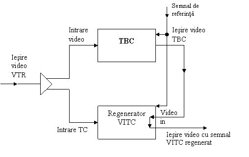Inlocuirea semnalului de sincronizare va determina pierderea informatiei de TC si de aceea avem nevoie de un regenerator de VITC, care sa regenereze codul aprioric corectiei de timp. O data regenerat el va fi inserat dupa ce semnalul video a fost corectat de catre un corector al erorilor temporale (Time Base Corrector).