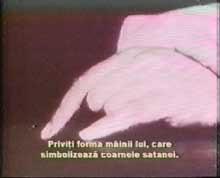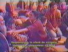 Exorcizare savarsita de un preot. Priviti cu atentie gesturile furioase, spasmodice, asemanatoare cu cele din muzica rock!