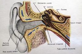 Prin pavilion capteazasi dirijeaza undele sonore spre conductul auditiv extern, care le transmite membranei timpanului. Membrana timpanului, care separa urechea externa de cea medie, cu grosimea de 0.1 mm si structura fibroasa, functioneaza ca un rezinator vibrand la modificarile de presiune determinate de undele sonor