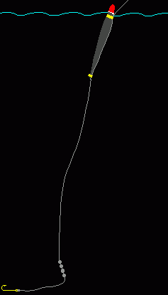 __Este compusa dintr-o pluta pe cat se poate ca cea din imaginea de mai jos, alice de plumb si un ac in functie de pestele din zona. Pluta se prinde atat aproape de extremitatea superioara cat si le extremitatea inferioara cu doua varnisuri de cauciuc. Acul se leaga direct pe camp, renuntandu-se la forfac, iar alicele de plumb se ataseaza la aproximativ 10 cm. de ac pentru a face fata curentului. Momeala folosite poate fi carne, buchet de viermi, rama, sau in caz de apa usor tulbure se poate folosi cascavalul.