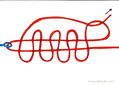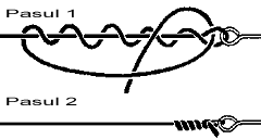 Legarea rigului. Cea mai indicata este folosirea celebrului nod fara nod (knotless knot) pentru care sunt de urmat doi pasi usori: |