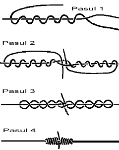 poate face intre doua fire de nylon, unul de 0,28 mm si unul de 0,35 mm, sau