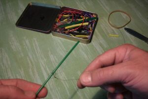 de la acesta din urma, masuram o lungime (cu vreo 30-40 de cm mai mare decat undita) de guta, pe care o sectionam de pe rola de fir.
