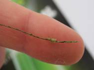 Introduceți un anou mic pe capatul scurt al firului, unde în mod normal ar trebui sa fie firul de par. |
