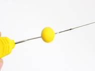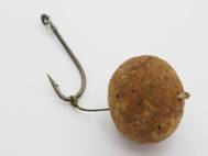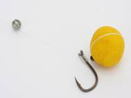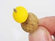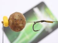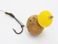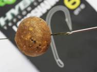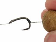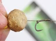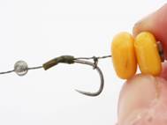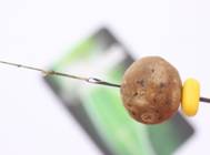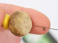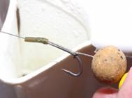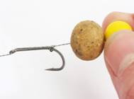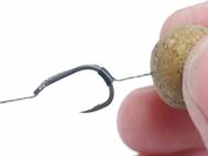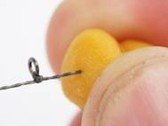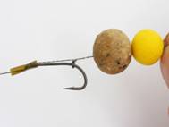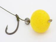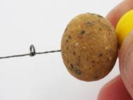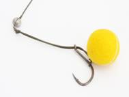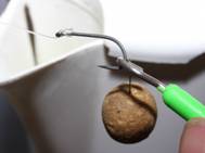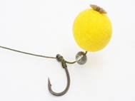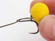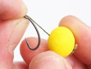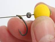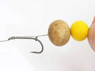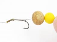 Pentru a crea rigul "snowman", introduceți pe croșeta un boilies pop-up urmat de un boilies de fund cu diametru mai mare. |