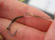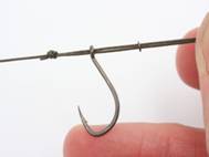 Un cârlig cu ochiul întors în afara și fir de fluorocarbon sunt esențiale pentru realizarea "D-Rig"-ului. |