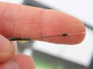 Fixați momeala cu un stoper. Acesta previne ca aceasta momeala sa iasa de pe firul de par. |