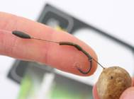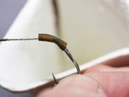 Introduceți momeala pe firul de par folosind o croșeta. |