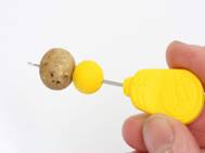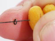 Atașați de firul de par doua boabe de porumb din plastic. Asigurațiva ca sunt flotante. |