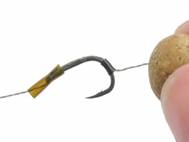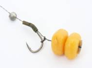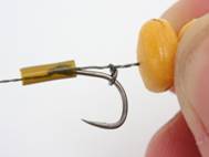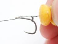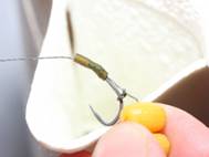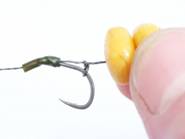 Acum adaugați momeala pe care ați ales-o. În acest caz, un boilie cu un bob de porumb deasupra. |