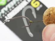 Introduceți momeala pe firul de par și fixați-o cu un stop. |