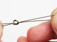 Creați o bucla din firul de flourocarbon și strângeți intre degete capatul, precum în figura alaturata. |