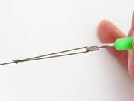 Introduceți cu grija vârful cârligului prin anou, ca în imaginea alaturata. |