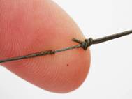 Veți avea nevoie de un fir textil foarte subțire pentru a lega momeala de cârlig. |