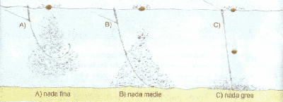 B) nada medie a carei granule, dupa imersiune, se descompun treptat pana in momentul in care atinge fundul apei. |