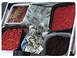Amestecati ingredientele uscate intr-o punga, separat amestecati ouale (batute bine) cu aromele, colorantul si dulceata, adaugati mixul uscat treptat amestecand in acelasi timp, trebuie sa obtineti o pasta destul de tare. Nu trebuie sa se lipeasca de maini. Rulati bilutele si firbeti-le timp de 3-6 minute. Dupa fierbere trebuiesc lasate la uscat minim 8 ore. Daca vreti sa le pastrati mai mult de 3-4 zile le congelati sau le tavaliti bine prin faina de malai si le atarnati undeva la racoare intr-un saculet din plasa sa se usuce bine.