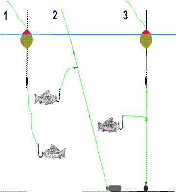 In cazul in care pescuim cu o montura intre ape, din cand in cand vom mai misca momela din loc, pentru a 'acoperi' o suprafata mai mare de apa.