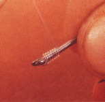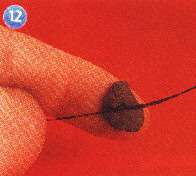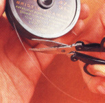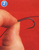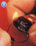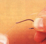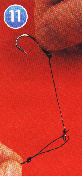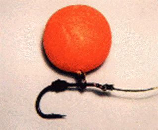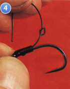 Now it's time to look at tying the boilie on. There is no right way to do this, but it is advisable to use a good tying material - like Krystons Samson, for example. One alternative is to create a groove in your chosen hook bait. Then carefully tie your boilie on as shown. Make sure you tie it as securely as you can - you don't want it coming off. |