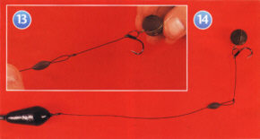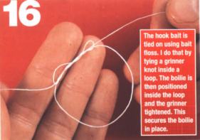 You'll notice that there are two sections to the hook length, making it a 'combi link'. These are ties together using a loop and another sliding ring. This technique should only be employed with a buoyant, popped-up boilie; as the effect gained will not be so pronounced on a bottom bait.