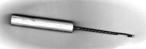 To thread the corn or a boilie onto this tag end, one uses a bait needle, which you can also make yourself. Simply take a large sewing or tapestry needle, and with a pair of wire cutters, clip out a section of the eye, leaving a j-shaped hook, as shown below.