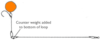 Now connect the hook section of your hook link to the loop. This part of the rig should be 2 or 3 inches long. Obviously there is room to experiment. This rig should be used almost exclusively with pop-ups. To balance the pop-up, simply mould some putty around the knot of the loop as shown. |