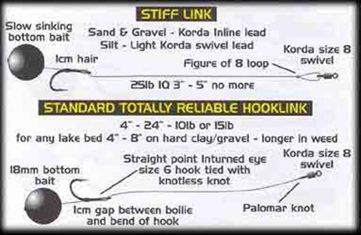 I hope that you understand my thinking behind all this. Whether I am right or wrong we will probably never know; but one thing I always emphasise to people is precisely that - theory. Noone knows for sure how each individual carp feeds and how the rigs behave amongst the rubbish on the lakebed, or whilst in the carps mouth. And, no matter how modern your rig, it's not going to work if the carp don't want to eat your bait.