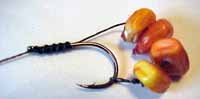 Legati un carlig caruia ii lasati firul de par mai lung decat la boilis (numai prin incercari veti putea determina lungimea optima), gauriti boabele de porumb cu un burghiu (daac este vorba de porumb uscat) si insirati-le pe fir, merg 2 pana la 8 boabe dar aveti grija la marimea carligului, treceti bucla rigului peste varful carligului, peste contra si trageti ultima boaba peste nodul ochiului asa fel incat bucla sa nu poata iesi cu usurinta.