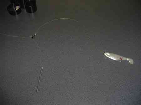 Apoi cu sarma subtire si oteloasa se leaga carligele triple si se ataseaza de