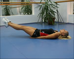 Culcata dorsal, mainile sub regiunea lombara, picioarele sus. Coboara picioarele pana aproape de sol si revino in pozitia initiala.
