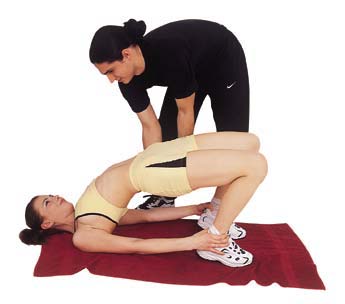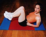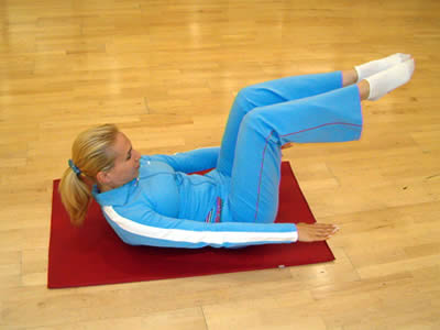 Vom incepe cu un exercitiu simplu pentru muschii abdominali. Intinde-te pe podea, cu picioarele ridicate, genunchii indoiti in unghi drept si umerii ridicati de pe sol. Mentine-ti echilibrul cu bratele intinse de-a lungul corpului, fara a atinge podeaua. Apropie umerii de genunchi, in timp ce expiri. Inspira, revenind la pozitia initiala. |